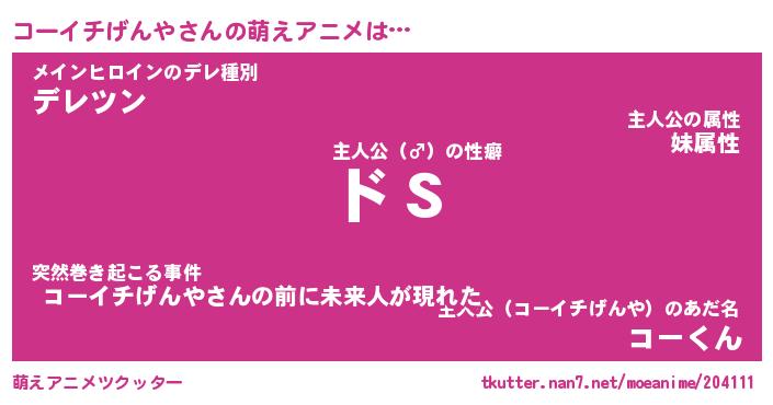 | 男性向けラノベタイトル風あだ名 | 『コーイチげんやの憂鬱』 |