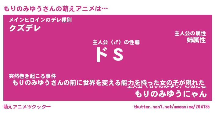 | 女子向けラノベタイトル風あだ名 | 『(仮)もりのみゆうのやんごとなき事情』 |