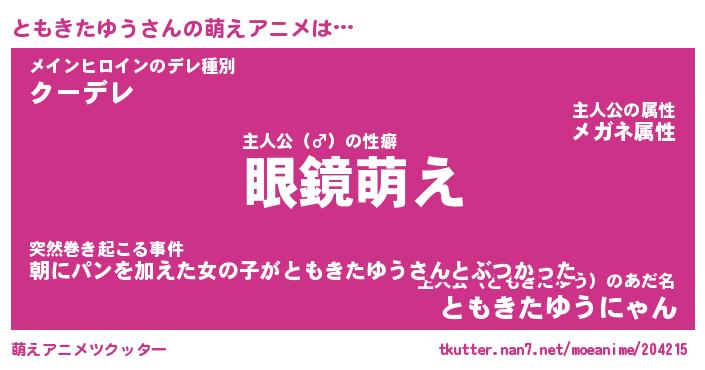 | 男性向けラノベタイトル風あだ名 | 『ともきたゆうの憂鬱』 |