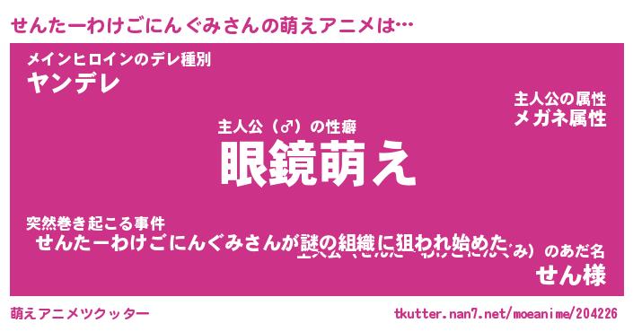 | 男性向けラノベタイトル風あだ名 | 『せんたーわけごにんぐみの憂鬱』 |