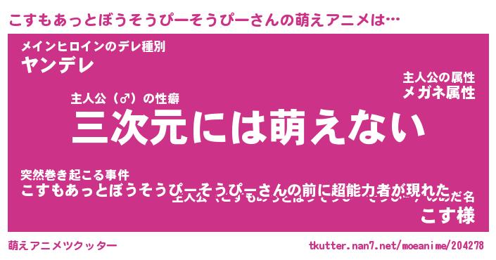 | 胡散臭い通販商品みたいなあだ名 | 『モテモテ間違いなしブレスレット…その名も「こすもあっとぼうそうぴーそうぴー」』 |