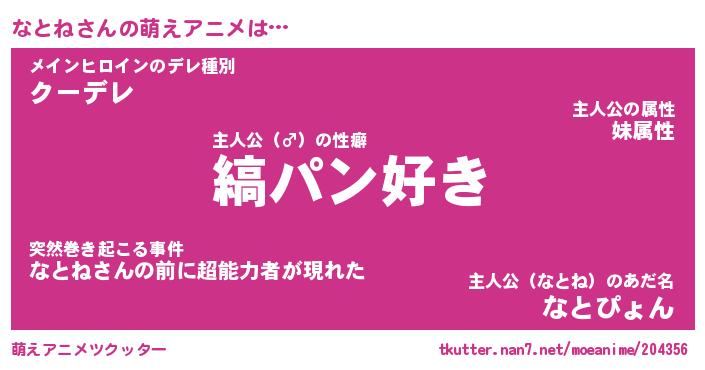 | 男性向けラノベタイトル風あだ名 | 『なとねの憂鬱』 |