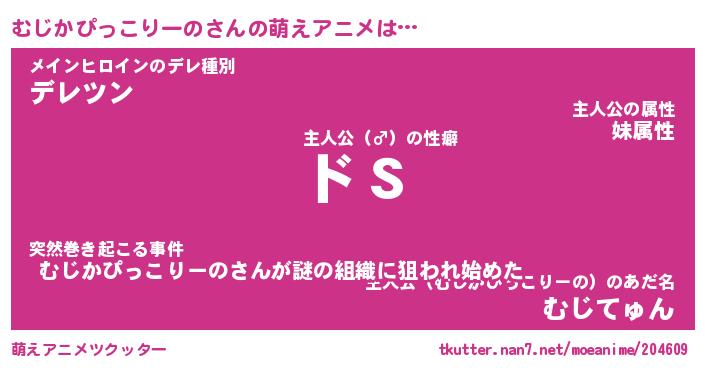 | 男性向けラノベタイトル風あだ名 | 『むじかぴっこりーのの憂鬱』 |