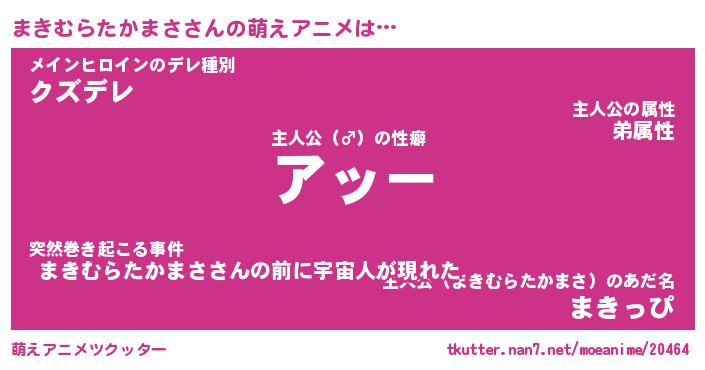 | 女子向けラノベタイトル風あだ名 | 『誰かこのまきむらたかまさを説明してください! ~契約から始まるウェディング~』 |
