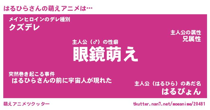 | 男性向けラノベタイトル風あだ名 | 『はるひらの憂鬱』 |