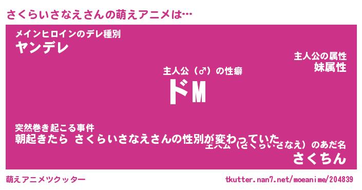 | 女子向けラノベタイトル風あだ名 | 『(仮)さくらいさなえのやんごとなき事情』 |