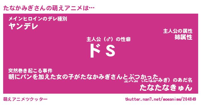 | 男性向けラノベタイトル風あだ名 | 『たなかみぎの憂鬱』 |