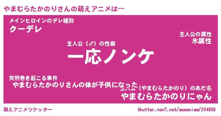 | 女子向けラノベタイトル風あだ名 | 『誰かこのやまむらたかのりを説明してください! ~契約から始まるウェディング~』 |
