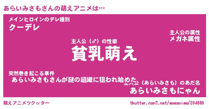| 肩書あだ名 | 『あらいみさも御曹司』 |
