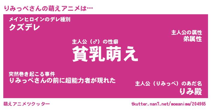 | 男性向けラノベタイトル風あだ名 | 『りみっぺの憂鬱』 |