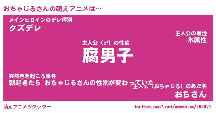 | 男性向けラノベタイトル風あだ名 | 『オチャジルアートオンライン』 |