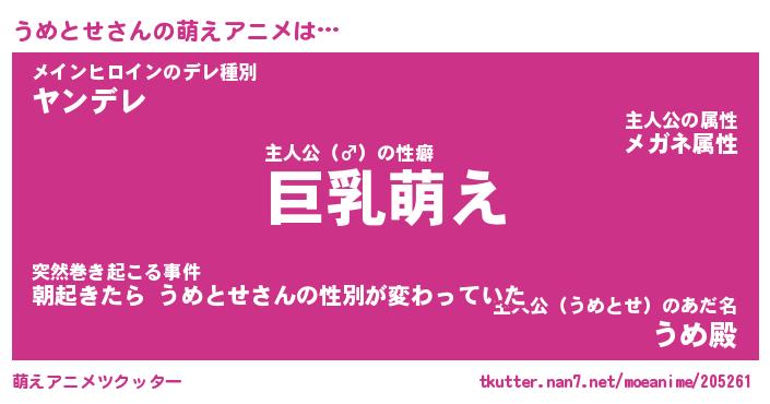 | 男性向けラノベタイトル風あだ名 | 『うめとせの憂鬱』 |