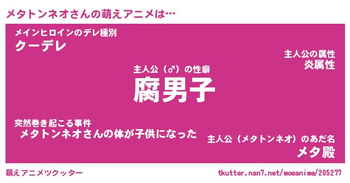 | ヘコむあだ名 | 『メタにゅー』『酢こんぶ』『メタを』 |