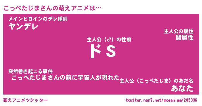 | 女子向けラノベタイトル風あだ名 | 『(仮)こっぺたじまのやんごとなき事情』 |