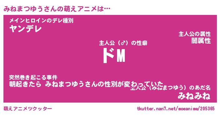 | 女子向けラノベタイトル風あだ名 | 『(仮)みねまつゆうのやんごとなき事情』 |