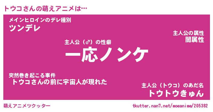 | 男性向けラノベタイトル風あだ名 | 『トウコアートオンライン』 |