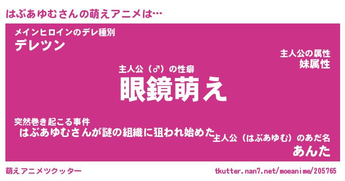 | 男性向けラノベタイトル風あだ名 | 『はぶあゆむの憂鬱』 |