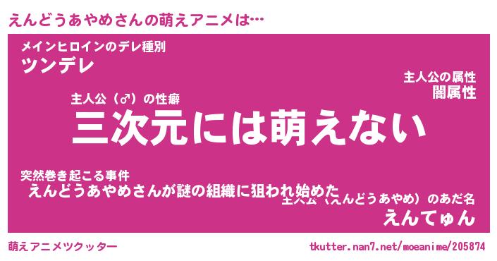 | 伝説のあだ名 | 『不死鳥の竜騎士えんどうあやめ』 |