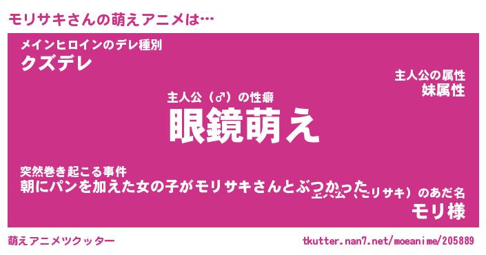 | 男性向けラノベタイトル風あだ名 | 『モリサキの憂鬱』 |