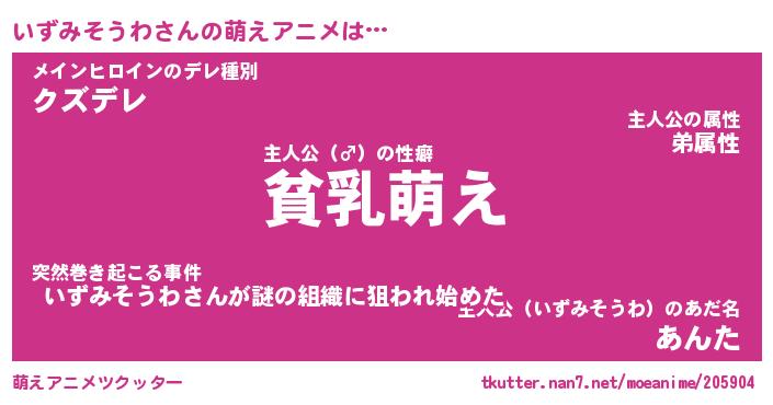 | 男性向けラノベタイトル風あだ名 | 『いずみそうわの憂鬱』 |
