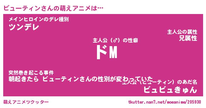 | 男性向けラノベタイトル風あだ名 | 『ビューティンの憂鬱』 |