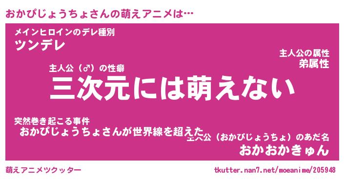 | 男性向けラノベタイトル風あだ名 | 『オカピジョウチョアートオンライン』 |