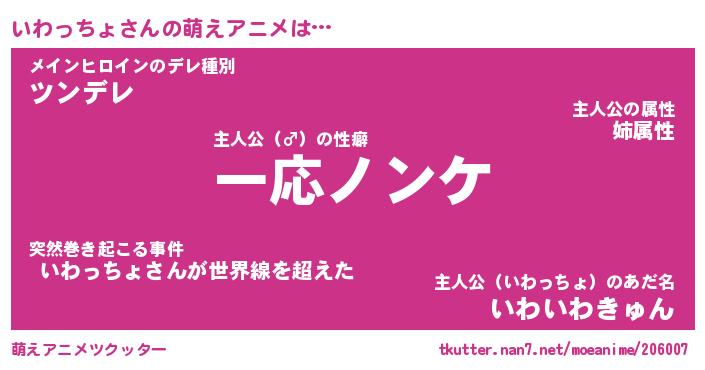 | 男性向けラノベタイトル風あだ名 | 『イワッチョアートオンライン』 |