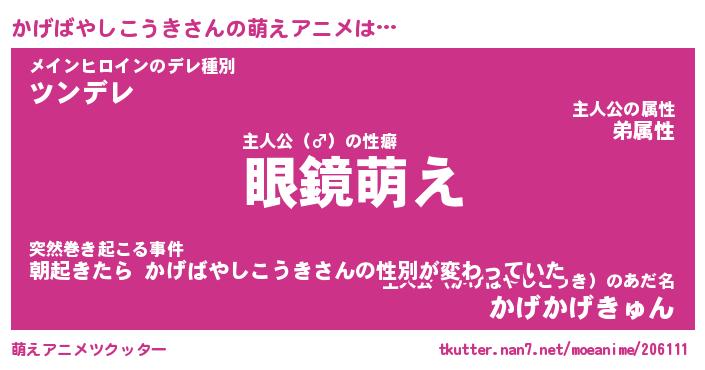 | 2回繰り返すあだ名 | 『かげかげ』『かかげげ』『ぬれぬれ』 |