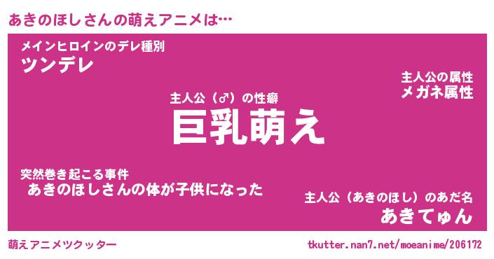 | 男性向けラノベタイトル風あだ名 | 『あきのほしの憂鬱』 |