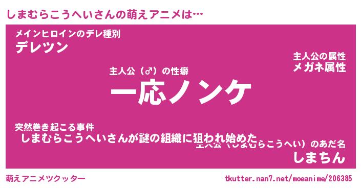 女子向けラノベタイトル風あだ名 | 『誰かこのしまむらこうへいを説明してください! ~契約から始まるウェディング~』 |