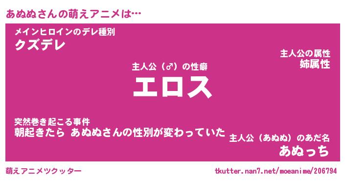 | ポケモン風あだ名 | 『アヌチュウ』『アヌヌダネ』 |