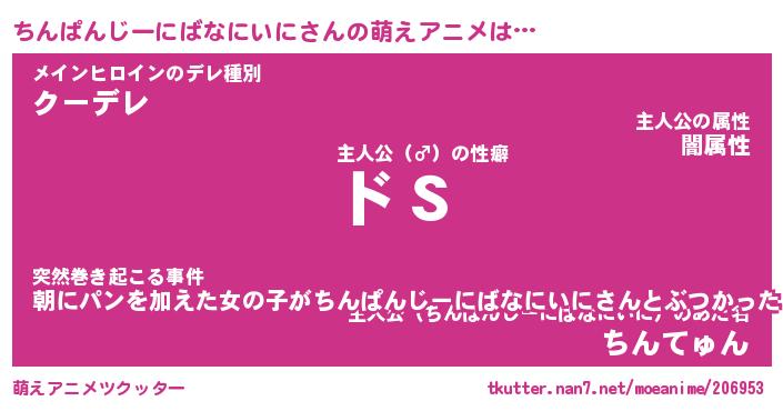 ちんぱんじーにばなにいにさんの萌えアニメをツクッター!