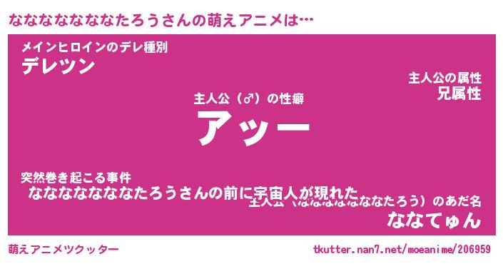 男性向けラノベタイトル風あだ名 | 『ナナナナナナナタロウアートオンライン』 |