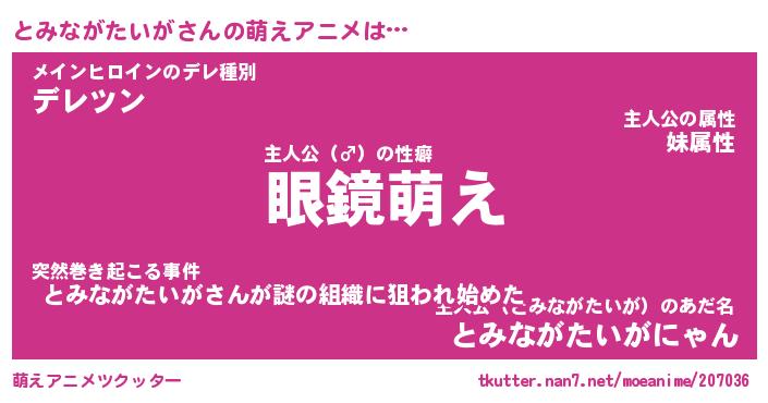 男性向けラノベタイトル風あだ名 | 『とみながたいがの憂鬱』 |