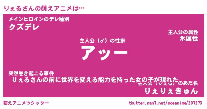 ヘコむあだ名 | 『りぇにゅー』『なまこ酢』『りぇを』 |