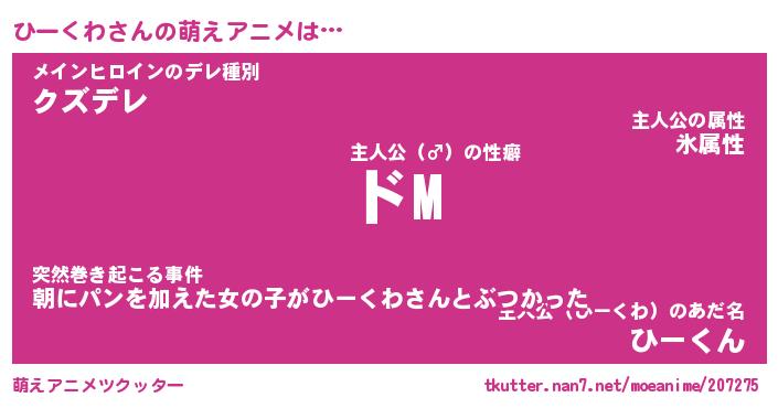 男性向けラノベタイトル風あだ名 | 『ひーくわの憂鬱』 |