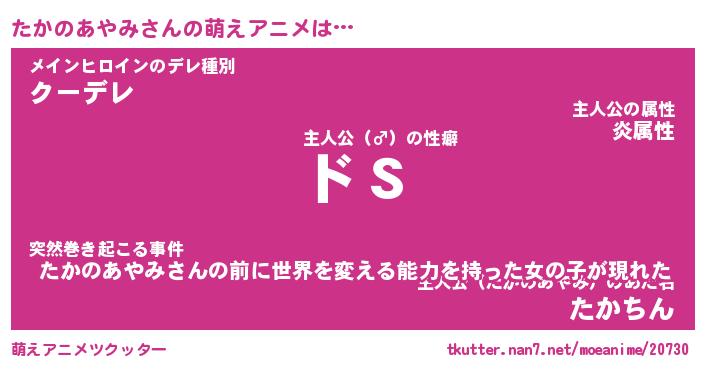| 女子向けラノベタイトル風あだ名 | 『(仮)たかのあやみのやんごとなき事情』 |