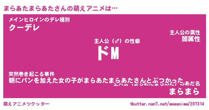 | 男性向けラノベタイトル風あだ名 | 『まらあたまらあたの憂鬱』 |