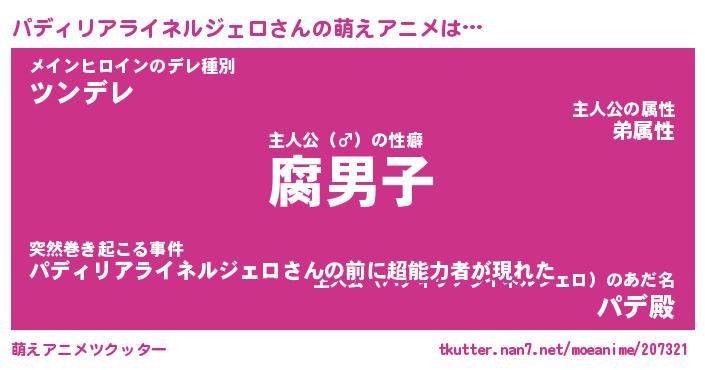 | 男性向けラノベタイトル風あだ名 | 『パディリアライネルジェロアートオンライン』 |