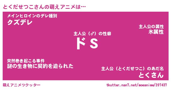 | 男性向けラノベタイトル風あだ名 | 『とくだせつこの憂鬱』 |