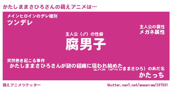 | 男性向けラノベタイトル風あだ名 | 『カタシママサヒロアートオンライン』 |