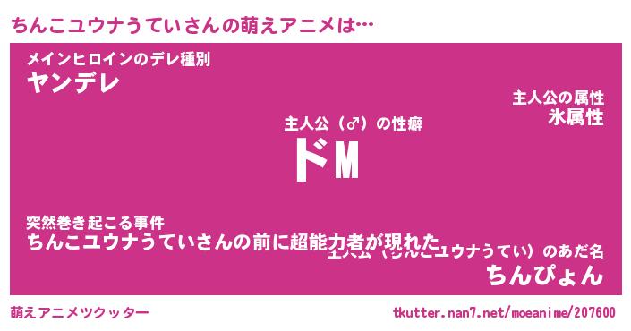 | 男性向けラノベタイトル風あだ名 | 『ちんこユウナうていの憂鬱』 |
