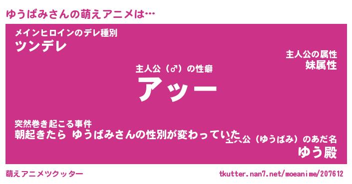 | 意味不明あだ名 | 『ペロリンゆうばみ』『永久保存ゆうばみ』 |
