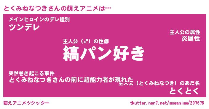 | 男性向けラノベタイトル風あだ名 | 『とくみねなつきの憂鬱』 |