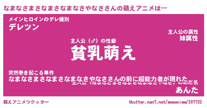 | 女子向けラノベタイトル風あだ名 | 『(仮)なまなさまさなまさなまなさやなさのやんごとなき事情』 |