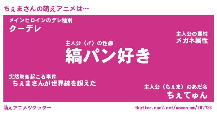 | 男性向けラノベタイトル風あだ名 | 『ちぇまの憂鬱』 |
