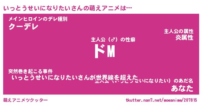 | 男性向けラノベタイトル風あだ名 | 『いっとうせいになりたいの憂鬱』 |