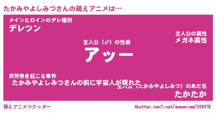 | 女子向けラノベタイトル風あだ名 | 『誰かこのたかみやよしみつを説明してください! ~契約から始まるウェディング~』 |