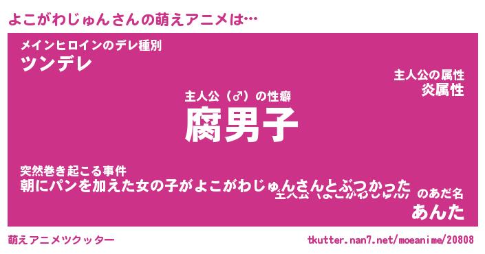 | 女子向けラノベタイトル風あだ名 | 『よこがわじゅん姫と円卓の騎士』 |