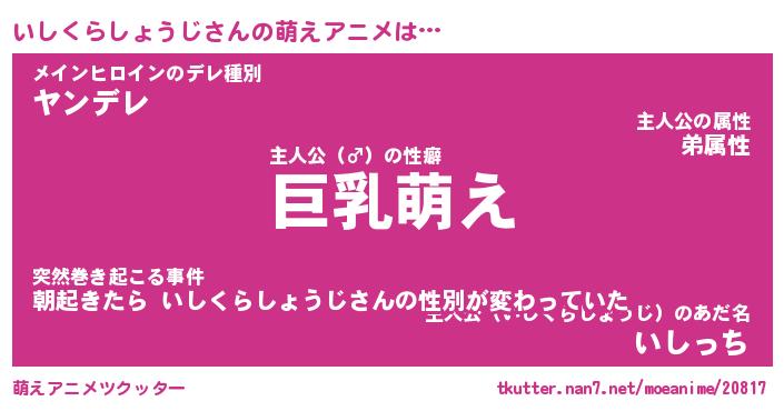 | 男性向けラノベタイトル風あだ名 | 『いしくらしょうじの憂鬱』 |